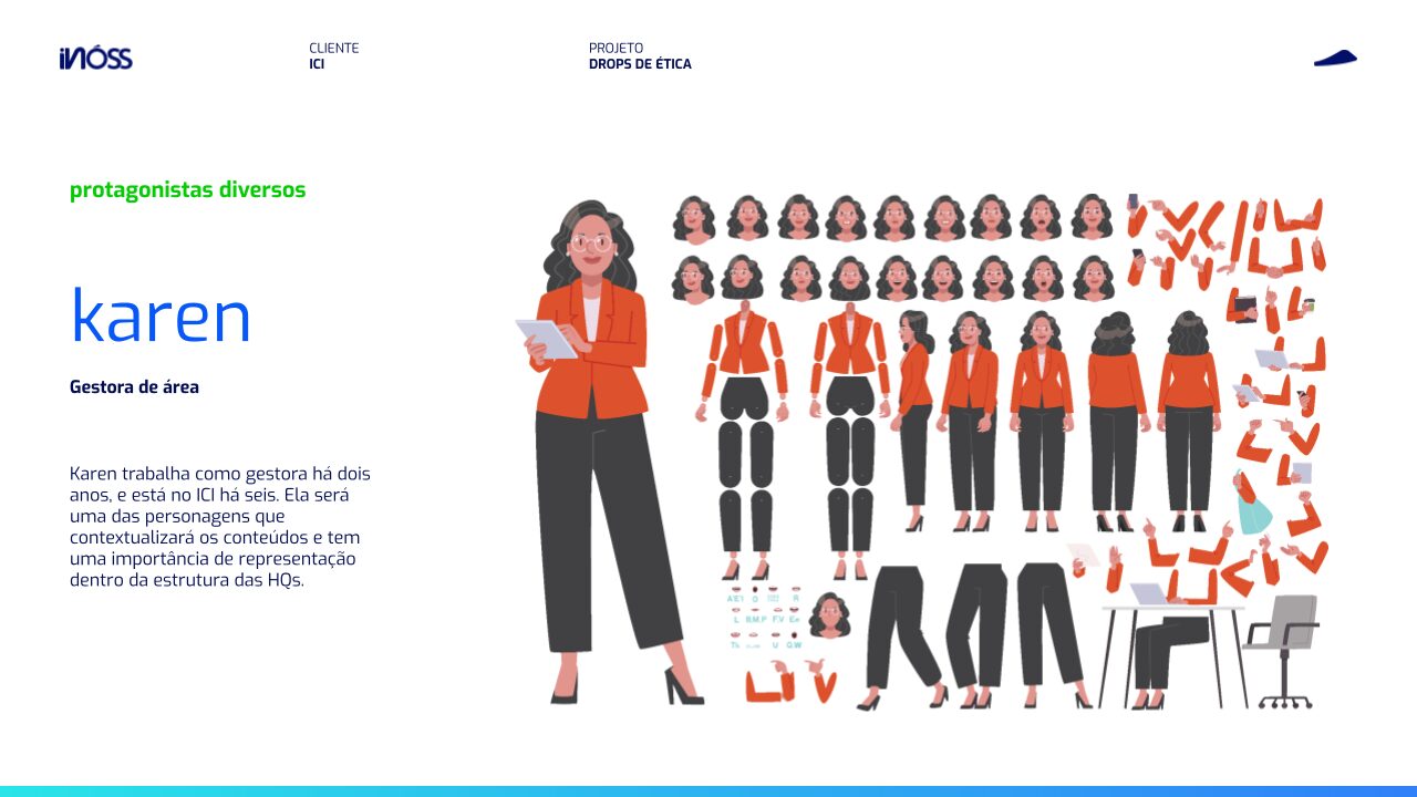 Para reforçar os principais pontos do Código de Conduta e Ética e disseminar conteúdos periódicos sobre ele entre o público do ICI, criamos o Drops de Ética, um material atrativo, lúdico e divertido em formato de histórias em quadrinhos.