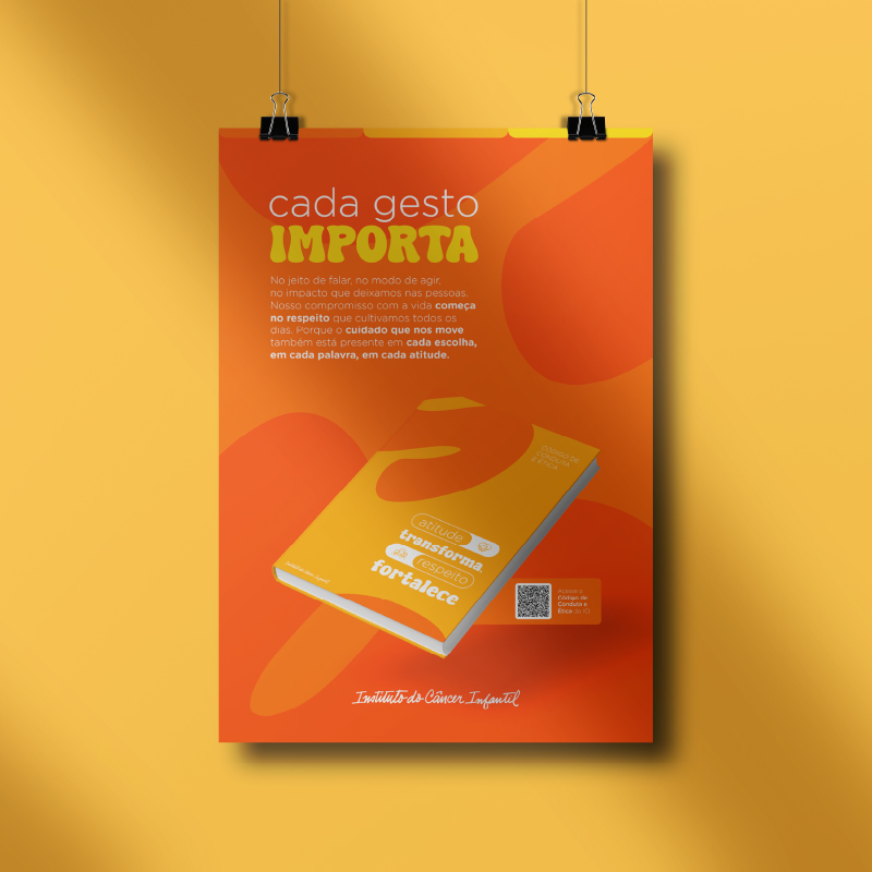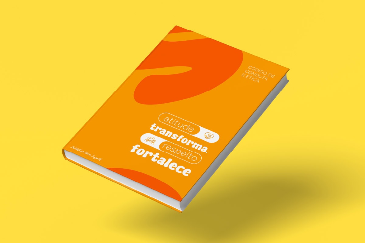Antes de desenvolver a campanha, olhamos para o próprio Código de Conduta e Ética e identificamos possibilidades de melhoria dentro do material. Propomos uma atualização da diagramação e identidade visual do Código para torná-lo mais atrativo e facilitar a leitura entre os colaboradores e voluntários.